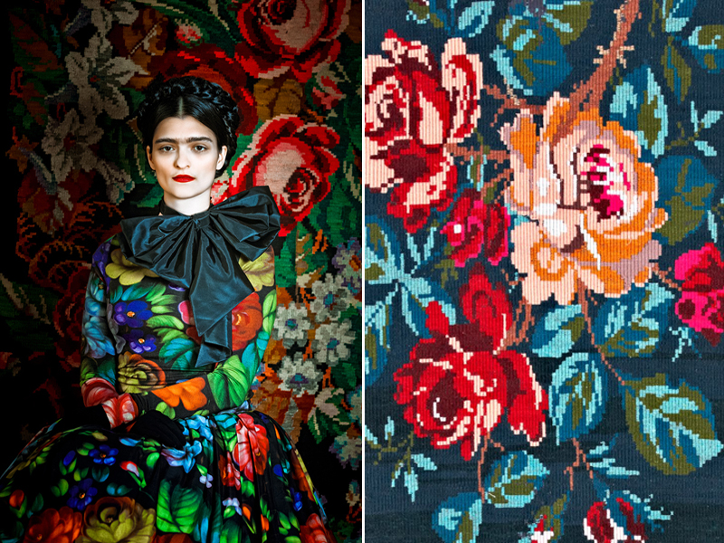 Since then I’ve been hooked and have looked to Frida’s work for inspiration in much of what I do – and I seem to not be the only one. Frida lives on as a modern-day cultural icon and references to her style and art can be seen in fashion trends, interior furnishings, photography, and popular culture on a regular basis. Personally, given half the chance I would surround myself in all things Frida-oriented! I recently treated myself to a gorgeous Queenie and Ted wrap with stunning embroidery and applique that to me is very Frida Kahlo. It has become my go-to autumn accessory!